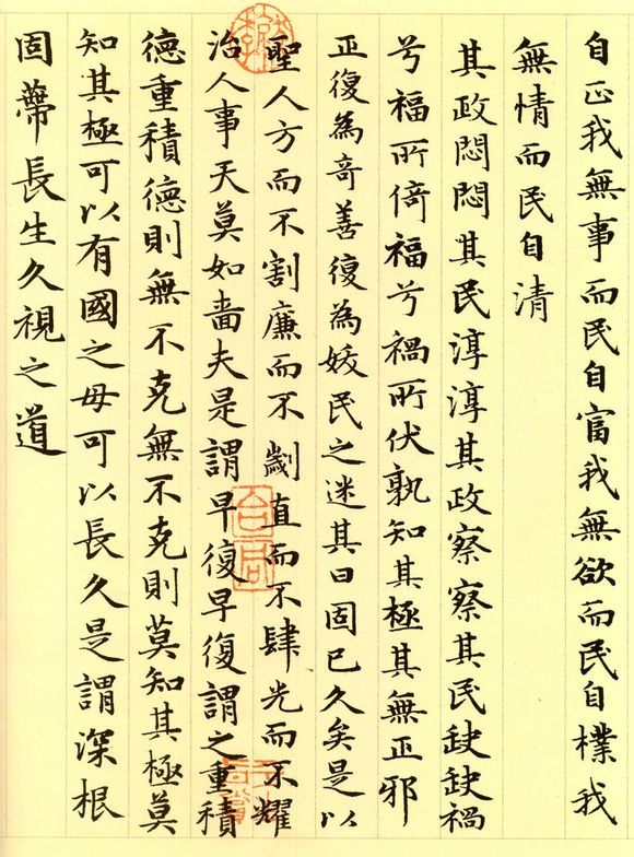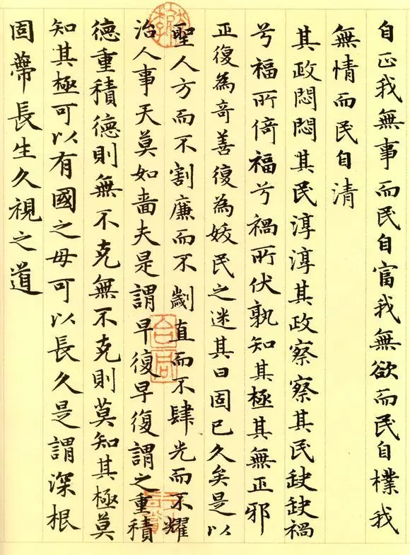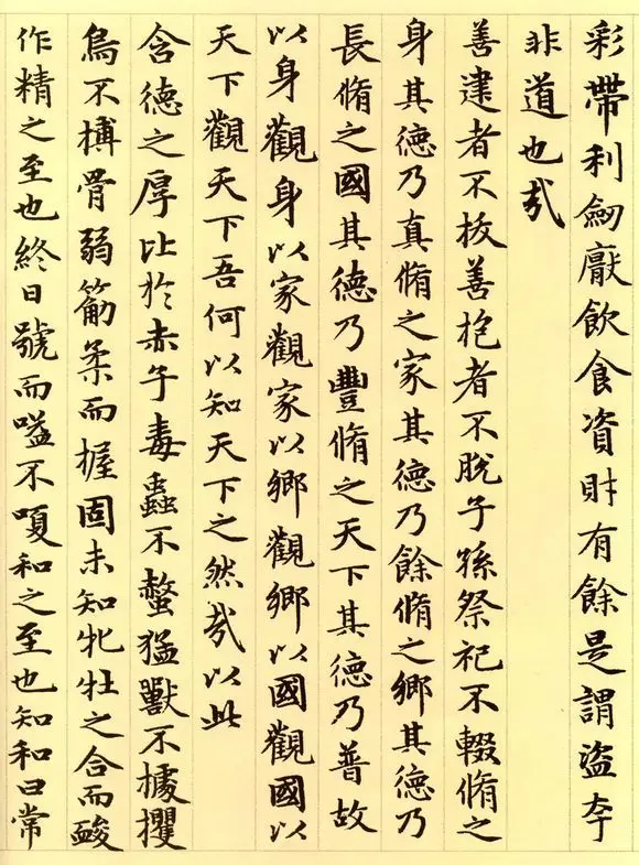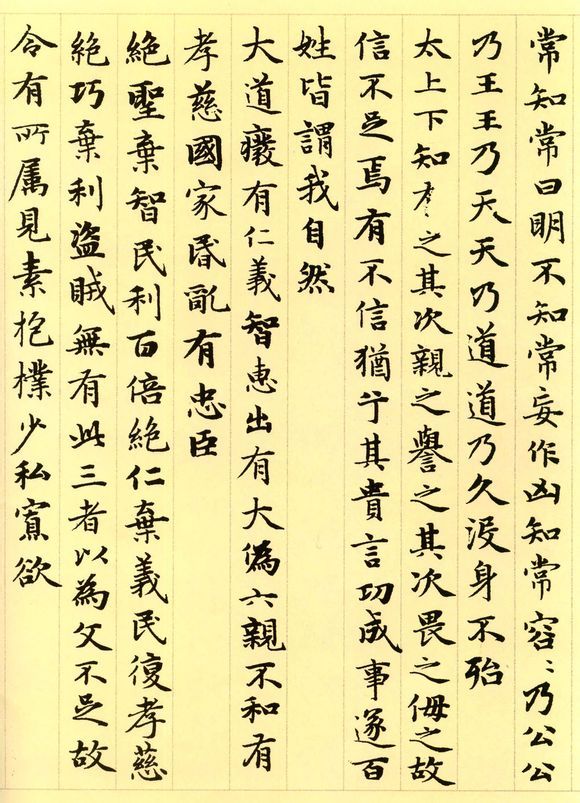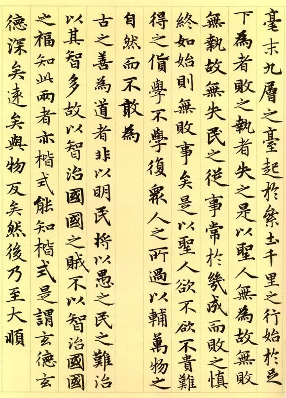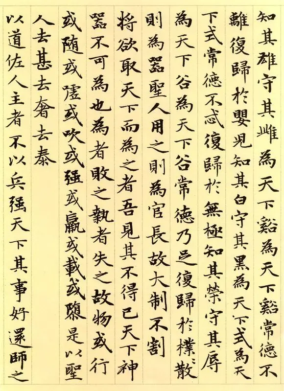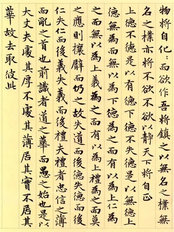 《道德经》是赵孟頫的小楷代表作,书于延佑三年(公元1316年),时年六十三岁,字体工整秀丽,笔法稳健,独具风格。赵孟頫佳作《道德经》,是700年来,书法人小楷学习的典范。