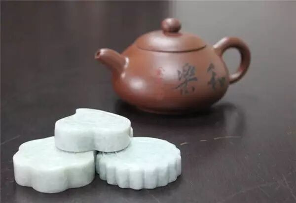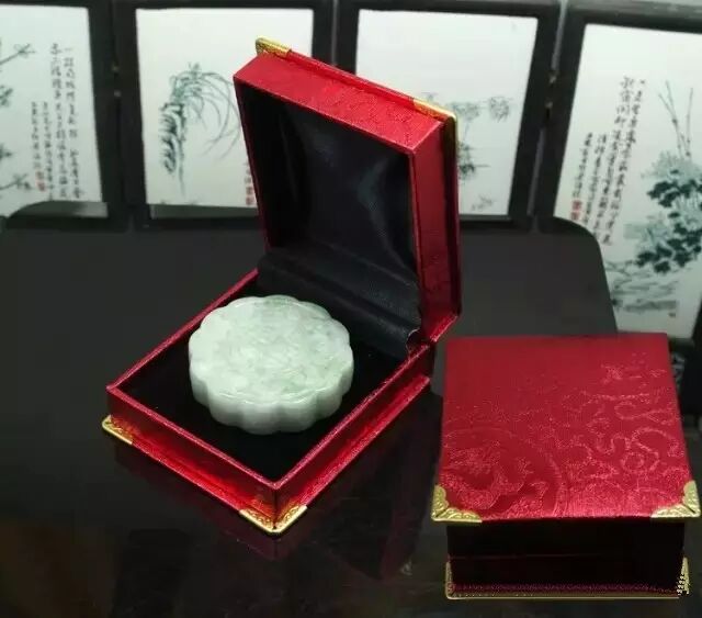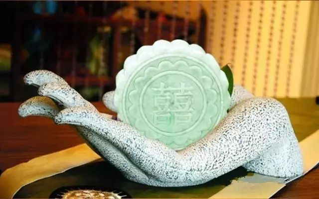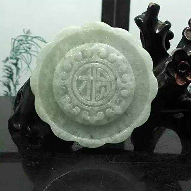 翡翠月饼巧夺天工,表面色泽饱满,花纹玲珑清晰,油润滋腻,跟月饼一模一样,只是拿在手中才感到有“分量”。