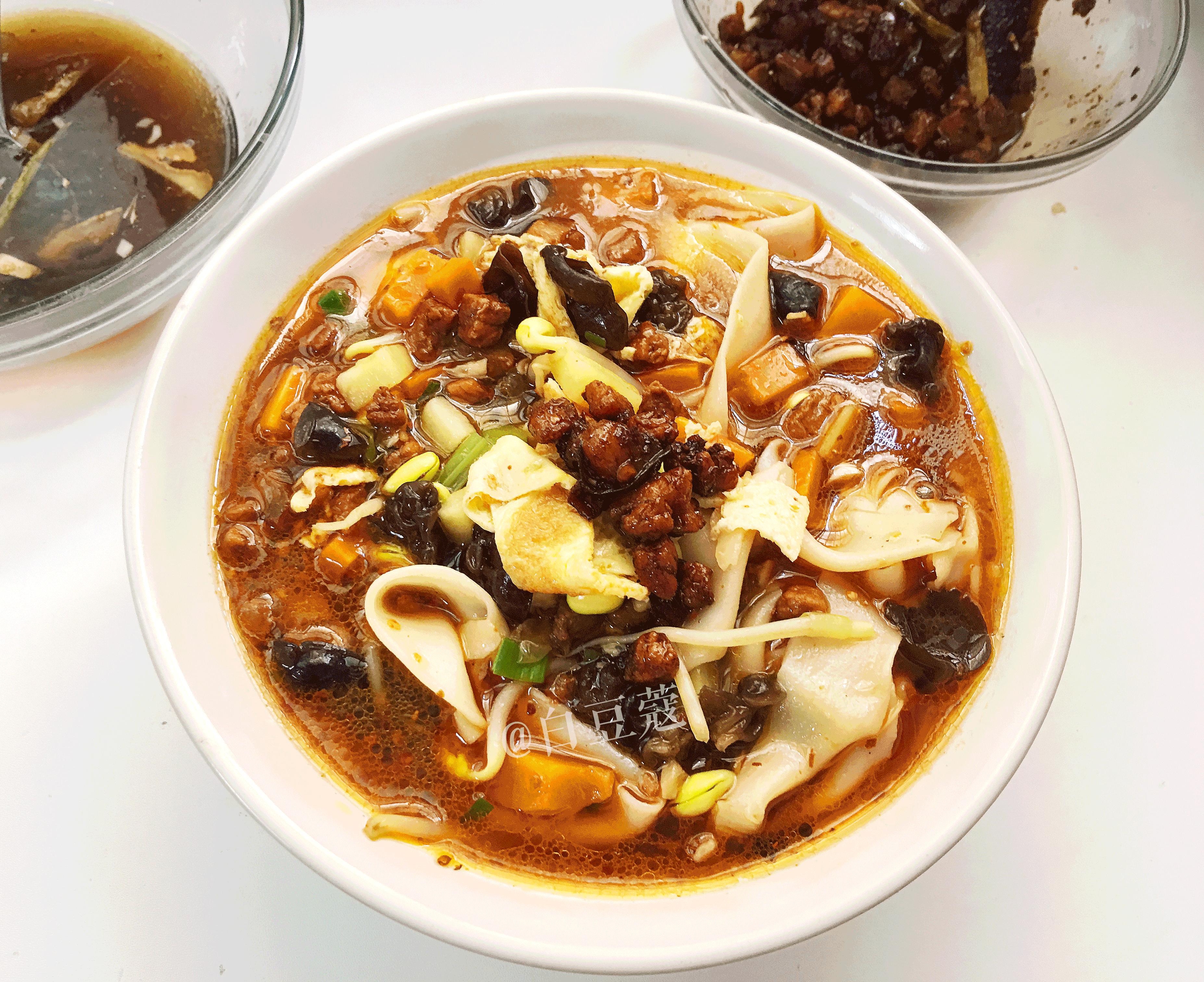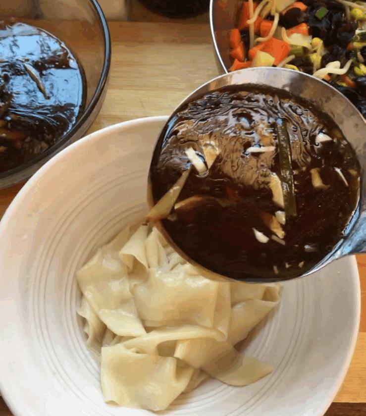 自己做的浇头料超足,肉臊子、鸡蛋皮、土豆丁、胡萝卜丁、木耳、黄豆芽也一样不少!