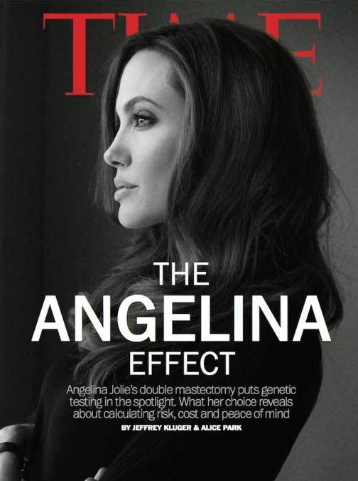 (b)每个人的细胞分裂一次产生突变的数目是不同的。这个主要受到遗传的影响,有些人天生就携带一些基因突变,这些突变虽然不能直接导致癌症,但是会让他们细胞每次分裂产生突变数目大大增加。去年好莱坞著名影星安吉丽娜·朱莉 (Angelina Jolie)在纽约时报撰文,说为了防止得乳腺癌而预防性切除双乳。该新闻轰动全球。她作此决定的原因就是她家族和她本人都携带BRAC1基因突变,有了这个突变,她的细胞分裂产生的突变比正常高百倍,因此她家族多名女性,包括她的母亲都很早就得乳腺癌,她个人被估计有87%的可能性得乳腺癌,50%可能性得卵巢癌。她的这个举动,当时我从科学眼光看有点冲动,因为不能保证其它部位(尤其是卵巢)不会发生癌变,但是她的勇气还是让我无比佩服。后来我听说朱莉要把卵巢也切除,我只能想到一个词:“壮士断腕”。