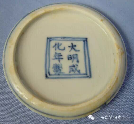 这块此片,很好地体现了有关成化官窑款的鉴定口诀:“大字尖圆头非高,成字撇硬直倒腰。化字人匕平微头,制字衣横少越刀。明日窄平年应悟,成字三点头肩腰。