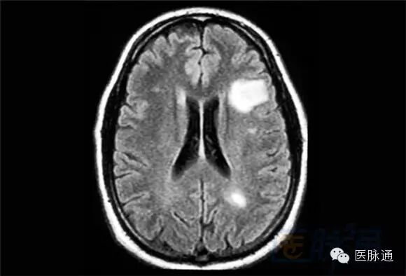 MS 的诊断是根据临床症状及辅助检查结果。一些临床医生使用2010年修订McDonald标准,该标准是结合临床症状、影像学检查和特异性检查来诊断MS 的。虽然血液和脑脊液对排除患者神经系统症状的其它病因是有价值的,但大脑、脊髓MRI仍然是帮助确定症状相关诊断和监测病情进展的首选检查。对比T1相 和FLAIR相(液体衰减反转恢复),MS斑块在T2相显示高信号(如图所示)。T1加权成像检测MS病变不太敏感,但它可以对慢性MS全脑萎缩情况进行 极好的全面评估。因为存在水肿和炎症,脱髓鞘病变有时与脑肿瘤相似。