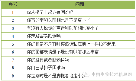 目前,国际上比较通用的是由9个问题组成的帕金森病筛查问卷,老年人可以问自己以下这9个问题,每个问题如果回答“是”就计1分,如果超过3分,建议您马上到医院做进一步检查。