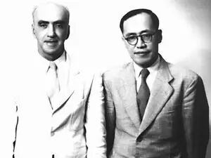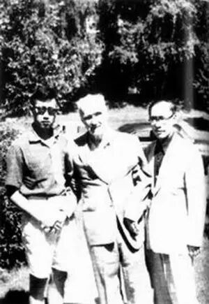 傅履仁(左)、司徒雷登、傅泾波(右)在美国合影