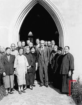 1946年10月19日,司徒雷登与教友们合影于'父亲的教堂'杭州天水堂前