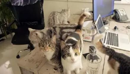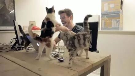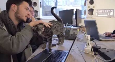 荷兰一家名叫“Poopy Cat”的工作室,专门制作猫用产品,办公环境也堪称猫控天堂,各种猫咪自由进出,随意坐随意吃随意玩,员工小哥们就每天一边摸猫一边上班...请问公司还缺人吗,上过大学喜欢被猫围攻的那种?