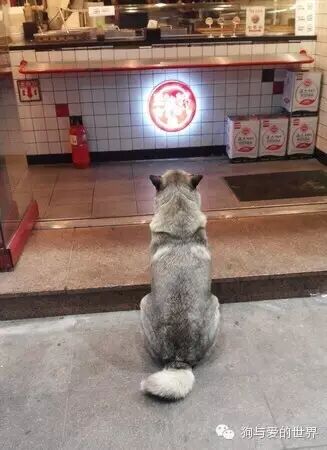 除了Cato,韩国一家冰淇淋店还有只二哈,已经12岁了,几乎对所有事物都不感兴趣,可是却每天痴痴地等在街对面炒年糕店门口,等好心人投喂年糕,一把年纪了吃货之魂还在体内燃烧