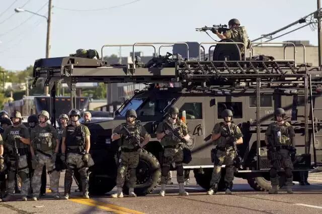 (图:美国警方在镇压弗格森暴乱)