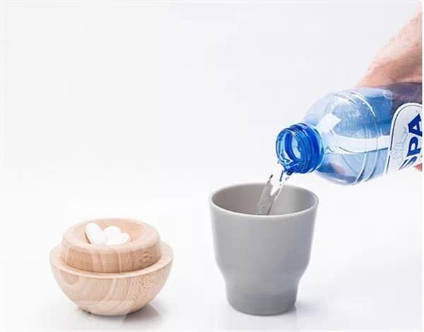 拿起第一个大杯子,就能见到第一层药物,大杯子即是防尘的罩子,也是吞服药物的水杯,二层、三层如此操作。