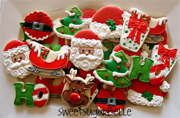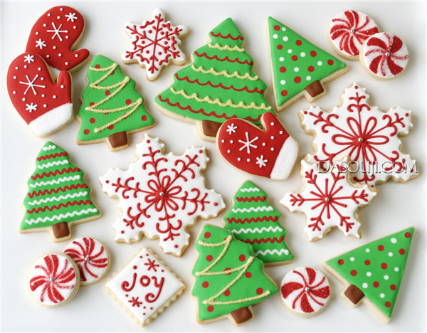 这组圣诞饼干不但给人们带来圣诞的气息,更为人们增添新年的喜庆气氛。顺祝大家圣诞、新年 快乐啦~~~别忘了把这份喜庆分享给更多朋友哦!