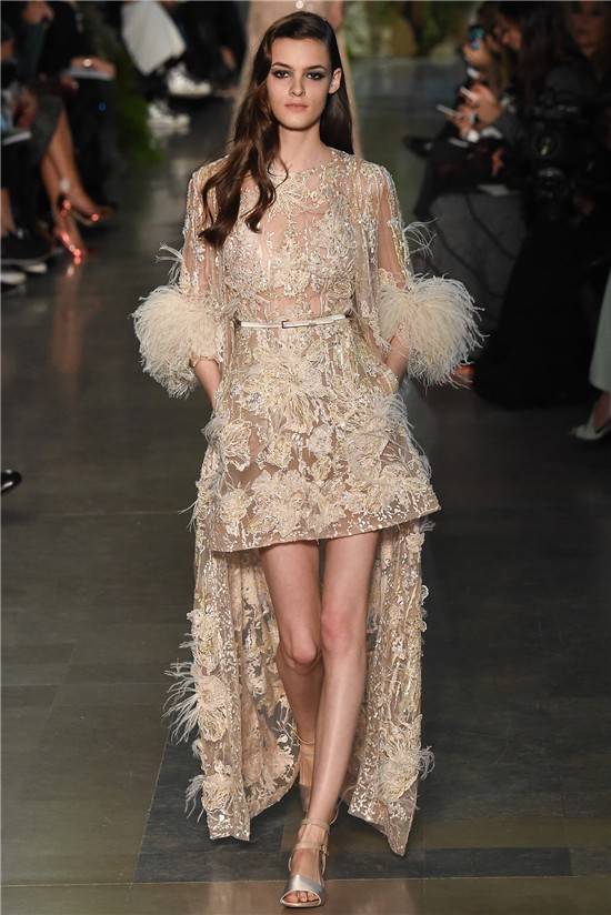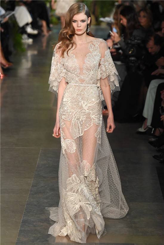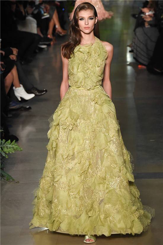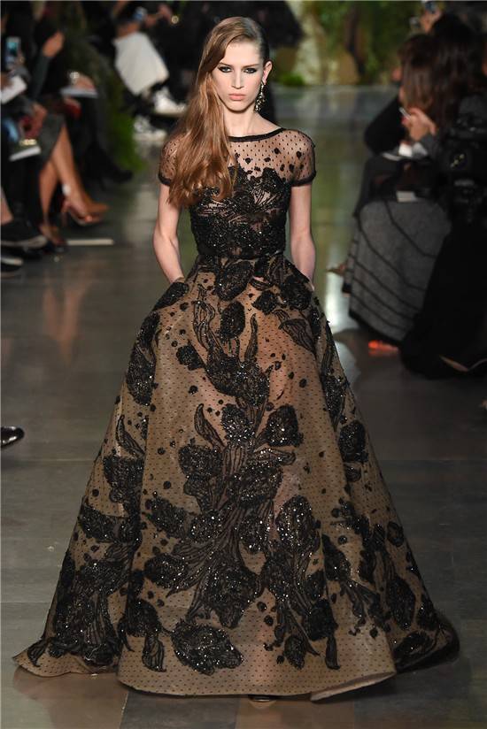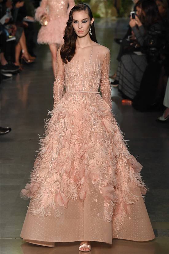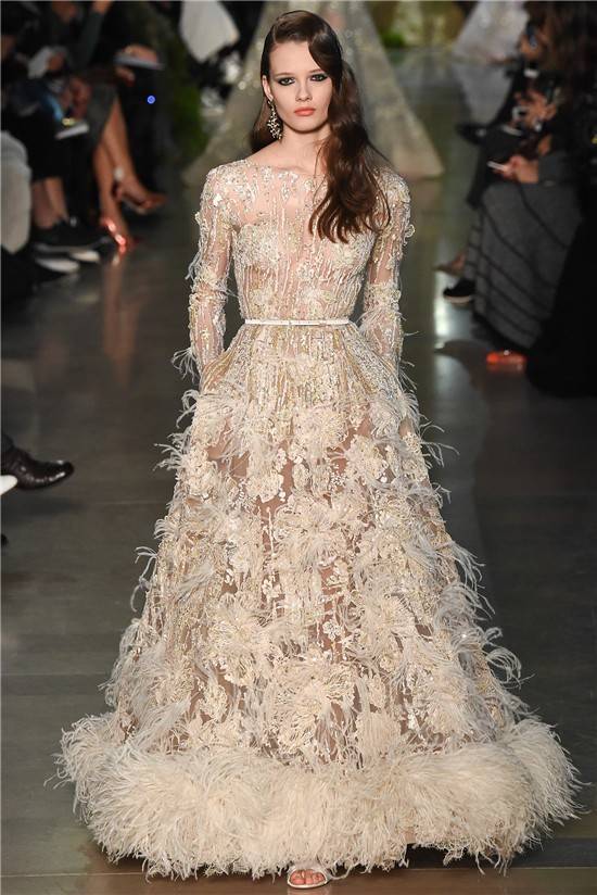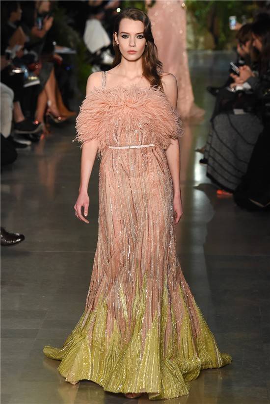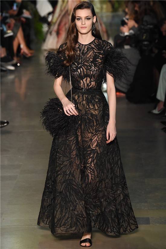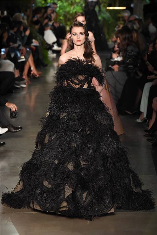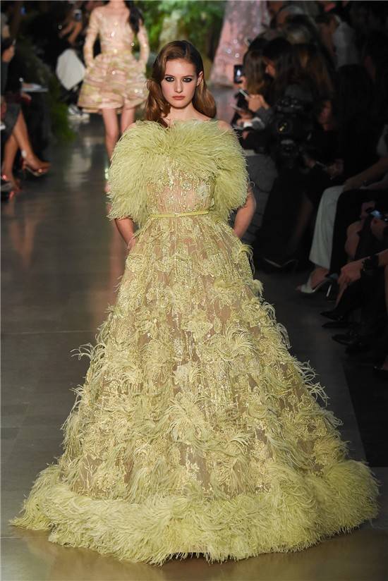 Elie Saab一向都是以奢华高贵、优雅迷人的晚礼服而著称。此次大秀同样没有让人失望,继续以华丽的晚礼服为主,刺绣镶嵌的裙摆,花朵装饰,鸵鸟羽毛的装点,繁花灌木的T台布置,充满贵族气息。