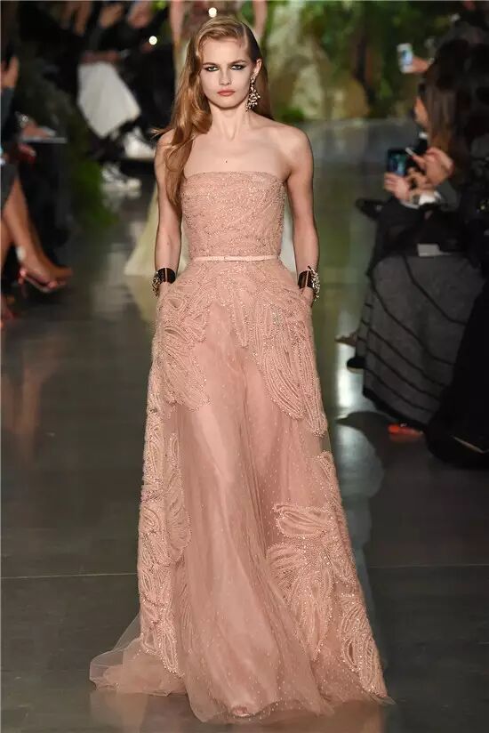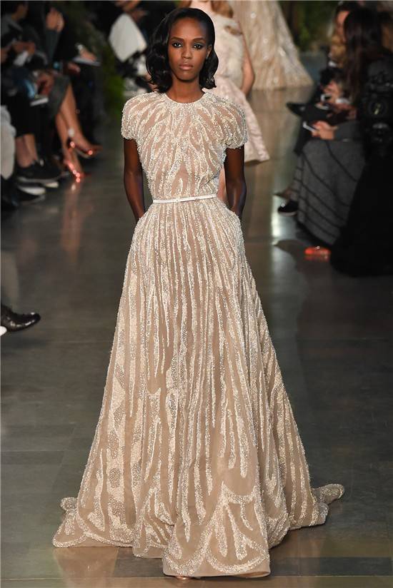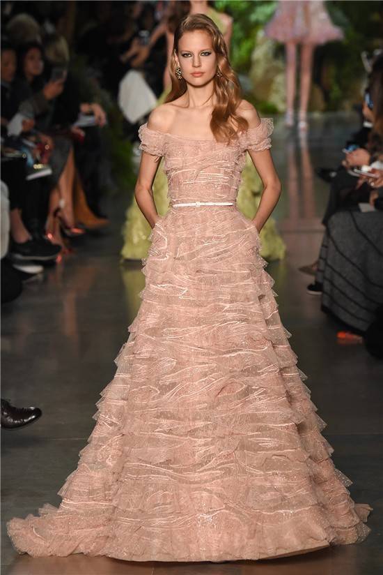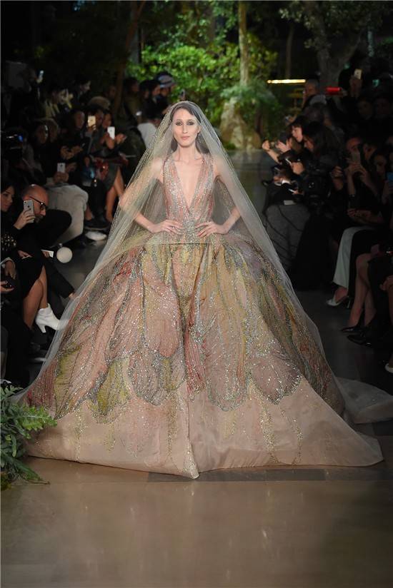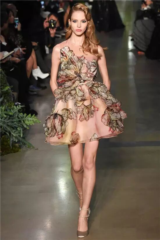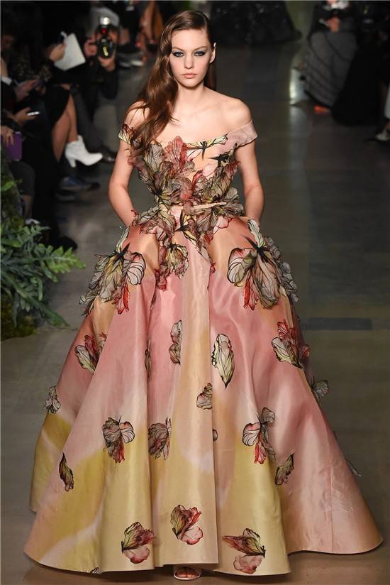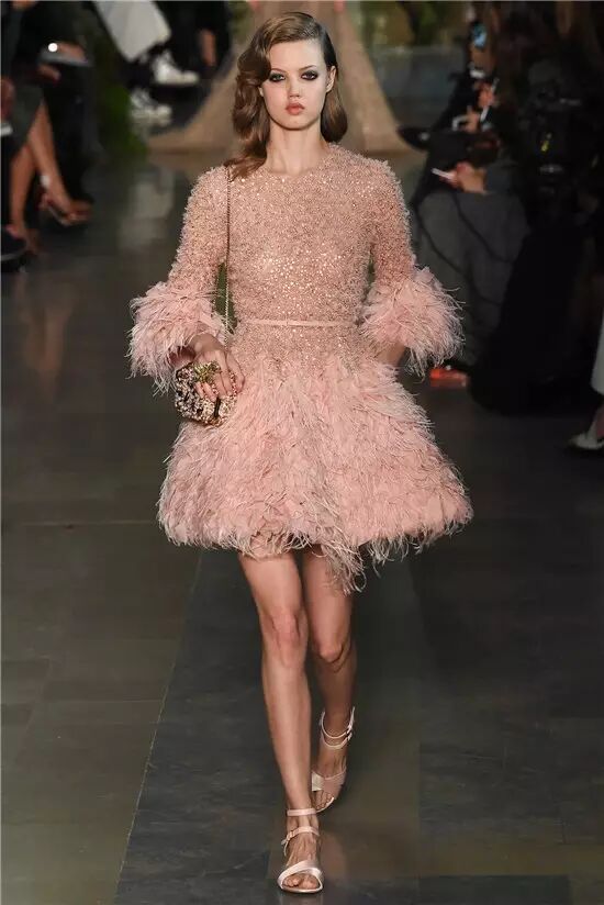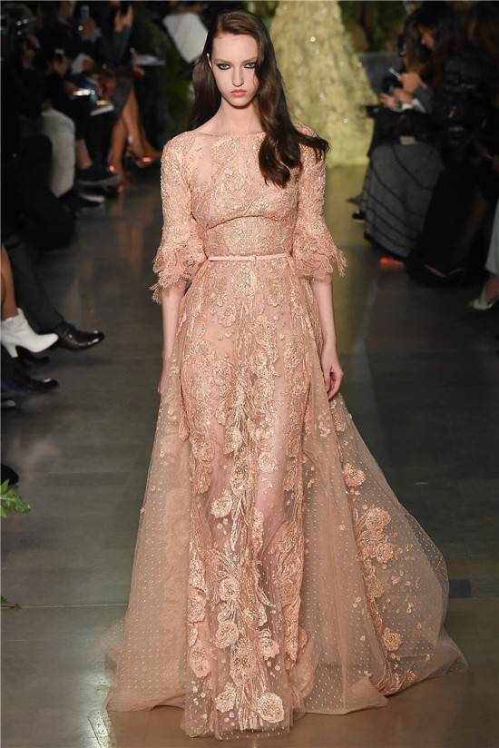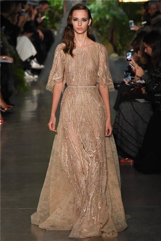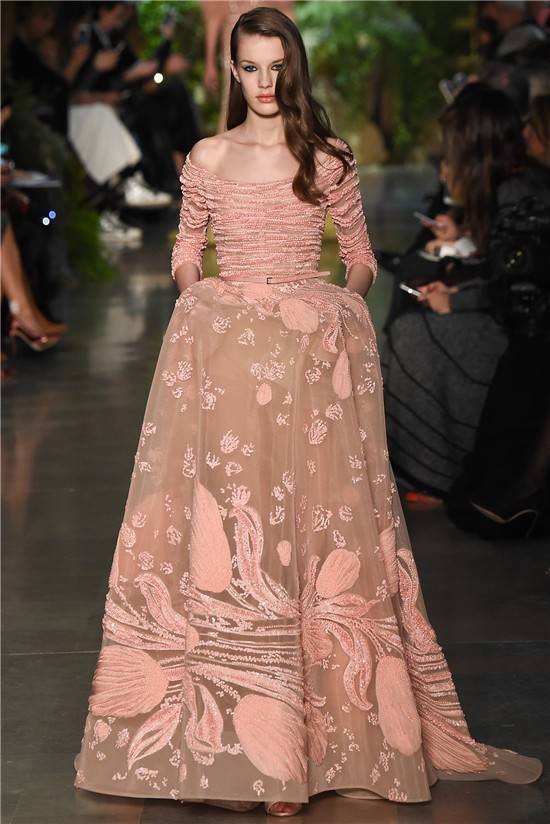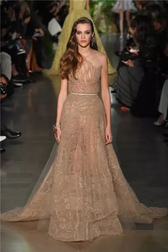 Elie Saab一向都是以奢华高贵、优雅迷人的晚礼服而著称。此次大秀同样没有让人失望,继续以华丽的晚礼服为主,刺绣镶嵌的裙摆,花朵装饰,鸵鸟羽毛的装点,繁花灌木的T台布置,充满贵族气息。