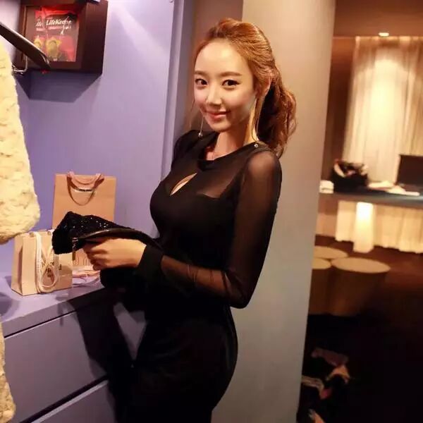 显瘦修身ol气质长袖打底连衣裙小黑裙