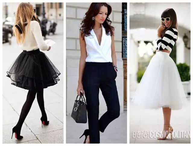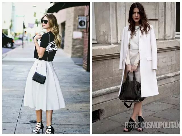 ▼小黑裙搭配白色衬衫或白Tee 最好学的黑白搭配