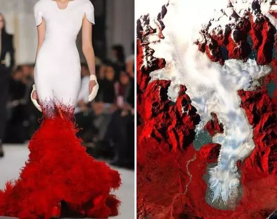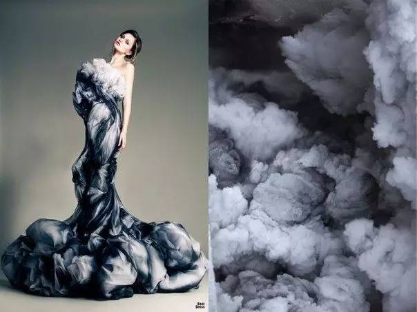 设计师们绞尽脑汁的榨取自己的创意,为的就是展现出品牌最美的一面。他们的确是生活中发掘出了各种时装的灵感来源,我们发现这些风景和时装竟然有那么惊人的相似之处。只不过,这些对美丽大自然的借鉴和艺术上的升华,确实是聪明的做法,经过Liliya Hudyakova拼合到一起做对比的时装风景照,更让人觉得这些漂亮的衣服直冒仙气。