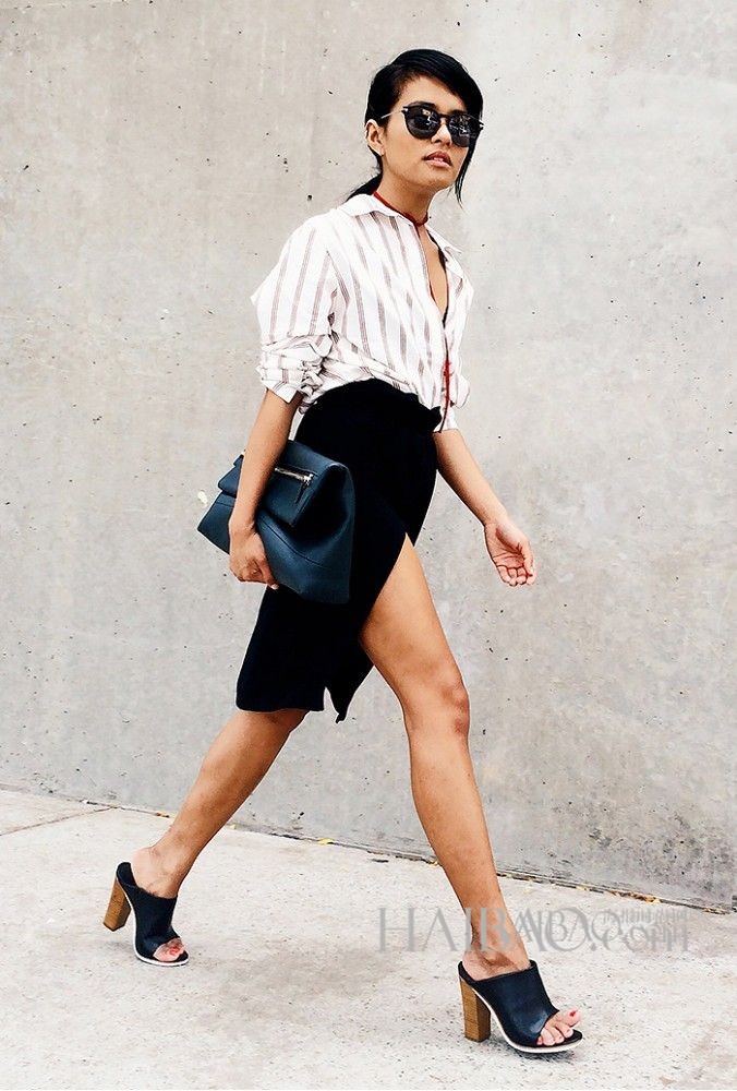 开叉裙不仅一定程度上能拉伸腿部比例,而且能将性感收放得当,配上一双高跟鞋,如果搭配够时髦的话,简直可以美刹了!