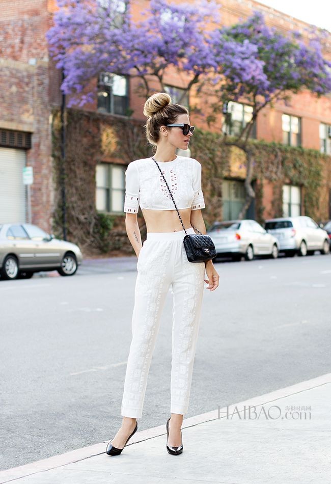 同高腰裙的效果,crop top也能达到胸部以下都是大长腿的效果。不过海豹君温馨提示:肚子上能褶三褶的姑娘们就不要轻易尝试了。答应海豹君,先去减减肥,甩掉水桶圈再来秀性感,好咩?哦,还有姨妈光临时会痛经的姑娘也不要轻易尝试,长期以该方式着装腹部易受凉,相信你也不想姨妈来的时候捂着肚子在地上打滚吧~