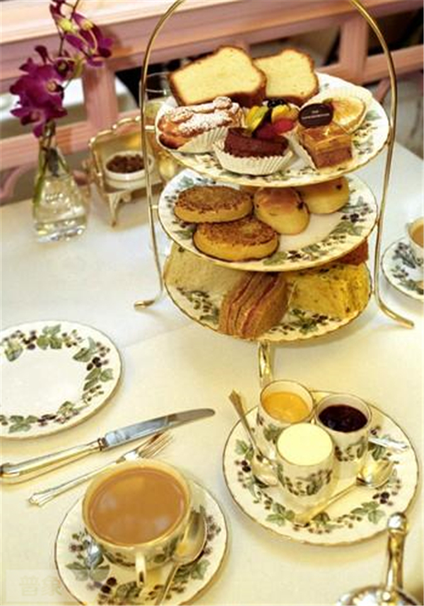 传统的晚餐要在8:30-9:00才开始,因此傍晚经常会饿。后来,贝德芙公爵夫人安娜·罗素发明了下午茶——晚餐前的小加餐。加餐通常包括:无边三明治、司康饼。此时一般不用刀具,而是用手掰。如果您愿意,还可以再来点儿果酱和凝脂奶油。