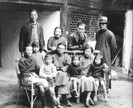 1938年,林徽因、梁再冰、梁从诫以及梁思成一家四口(前排左起一至四)在西南联大的“教授之家”。