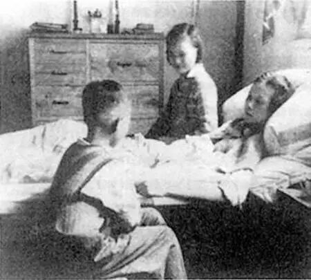 病中的林徽因与女儿梁再冰、儿子梁从诫在四川