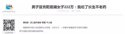 据新华网报道:2017年5月22日,根据深圳中级人民法院的公开信息,一名冒充“乾隆皇帝”在深圳行骗的男子刘乾珍在该院出庭受审,而和“乾隆皇帝”搭伙行骗的人,则自称是金融大鳄索罗斯的弟子。