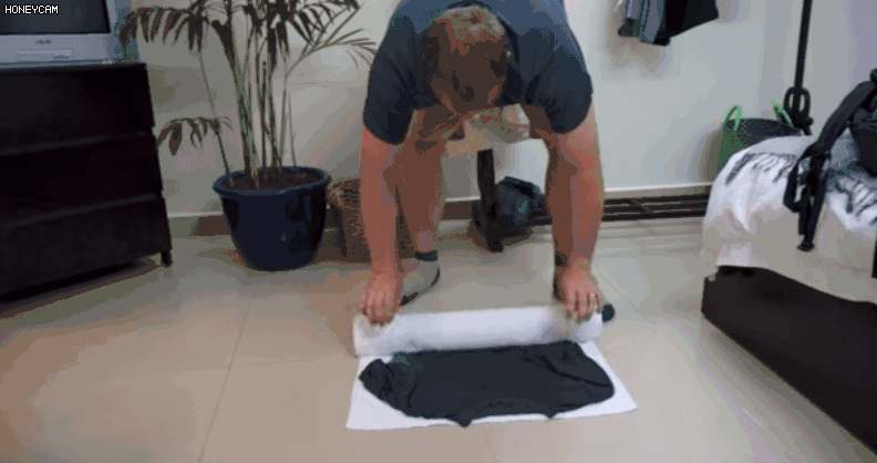 拿出酒店的浴巾,把衣服平铺在上面,然后卷起来,两段对折后,上去踩踩踩。不过不建议像动图里这样直接放在地板上,可以在地上铺一层塑料袋~踩5分钟后拿出来看看,你绝对不敢相信你的眼睛!