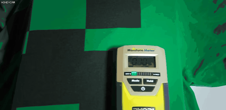 把要甩干的衣服放进洗衣机,等机器工作完成后,拿出清洗的衣服,测试上面的湿度,显示含水量20%。