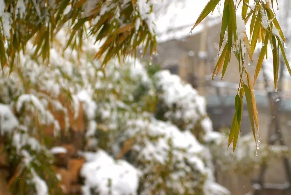 晚明文人高濂的《山窗听雪敲竹》里说,“ 飞雪有声,惟在竹间最雅。山窗寒夜,时听雪洒竹林,淅沥萧萧,连翩瑟瑟,声韵悠然,逸我清听。忽尔逥风交急,折竹一声,使我寒毡增冷。暗想金屋人欢,玉笙声,恐此非尔欢。”然而此等风味,我辈只怕是无福消受了。