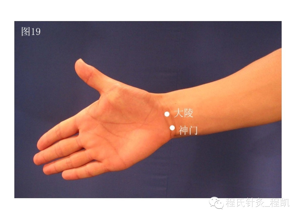 将一手拇指立起,用指尖点按另一手腕掌侧横纹处的神门穴和大陵穴,每穴各一分钟,左右手交替治疗各三次(即左右手两侧的神门与大陵四个穴位,每穴交替治疗共三分钟)。神门在腕掌侧横纹上,豌豆骨的下缘;大陵在腕掌侧横纹的中间,握拳时手腕部两条明显的肌腱之间。
