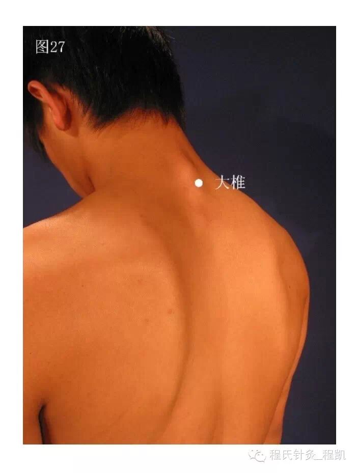 低 头时,摸到颈后最突起的高骨,在这块高骨的下方就是大椎穴,这里是人体所有阳经汇聚之处,阳气聚集,是治疗感冒的重要穴位。如果自觉感冒袭来,有了一些头 晕、头痛、鼻塞、咽痒等前驱症状,可以用手掌搓热颈后的大椎穴,以皮肤发热发红这度,帮助振奋阳气,抗御外邪。如果能洗上热水澡,那么就用热水多冲冲这个 部位吧,哪怕只用热气腾腾的毛巾晤晤大椎,都有防治感冒,缓解症状的神奇效果!
