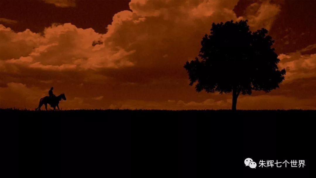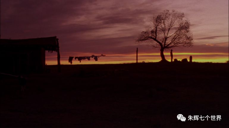 影片结束是黄昏的剪影:小屋,树,男人在墓碑前默立。