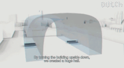 简单来说,这是一个巨大的拱形建筑,中间是巨型菜市场,两侧则是公寓。