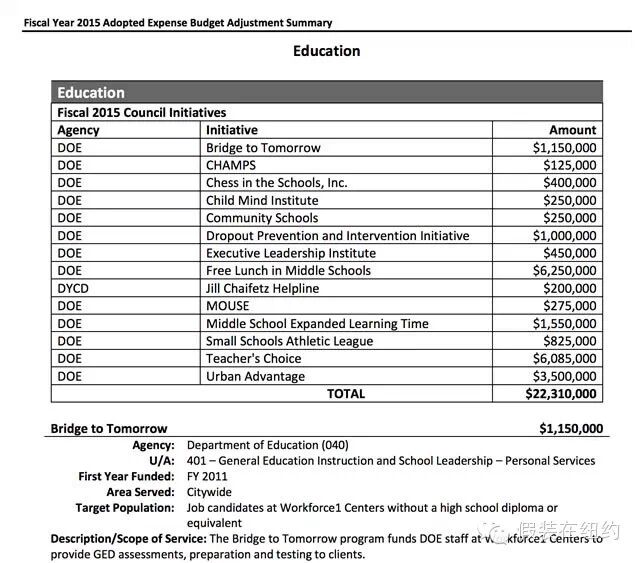 最让人叹为观止的还是预算。通过搜索,我几乎不费吹灰之力地查到了纽约市议会网站上公布的2015财年的预算,这是一个有292页的巨大文档,上面巨细无遗地列举了分配给每一个市议员、每一个民间机构的每一笔钱,以及这笔钱的金额和用途。比如我看到一个叫做“韩裔美国人家庭服务中心”的非营利组织就申请到了3900美元,这笔钱用于雇佣能说韩语和懂韩国文化的工作人员,为韩裔家庭暴力受害者提供帮助,协助申请到这笔钱的是市议员Daniel Dromm。在这个文档里,这样的条目大概有成千上万,小到几百、几千美元,多到几万几十万美元,每一笔预算都能像这样找到出处。