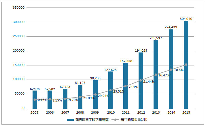 根据媒体报道,大约从2006年开始,中国出现了大规模的出国留学热潮,而且逐渐呈现出低龄化的趋势,从以前的出国读硕博为主,转为以本科为主,初高中甚至小学生这种小留学生也迅速成为潮流,当然这中间的相当一部分是到美国读书(根据2015年的数据,美国现在有30.4万就读的中国各类留学生)。