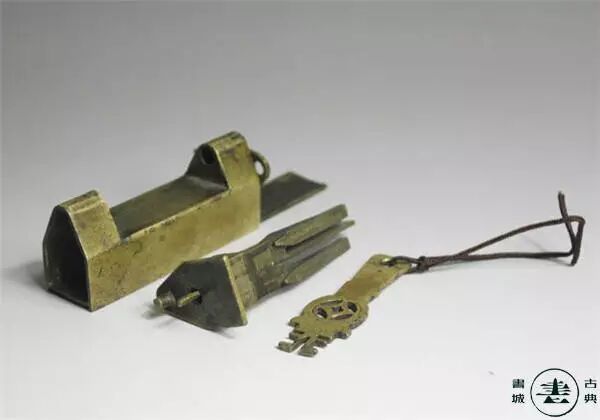 古锁初称牡、闭、、钥、链、钤。早在远古时代,人们就把贵重物品用兽皮包裹起来,外面用绳索捆绑,在开启处打上特殊的绳结,这种绳结只能用一个叫“骨锉”的工具才能挑开,绳结和骨锉就是锁和钥匙的雏形。