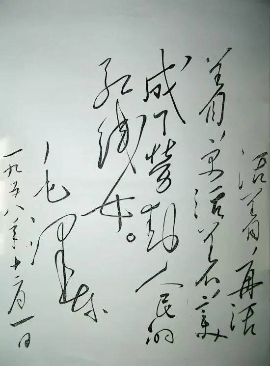 1944年,毛泽东为中央警卫团战士张思德作了《为人民服务》的著名演讲,并题字。