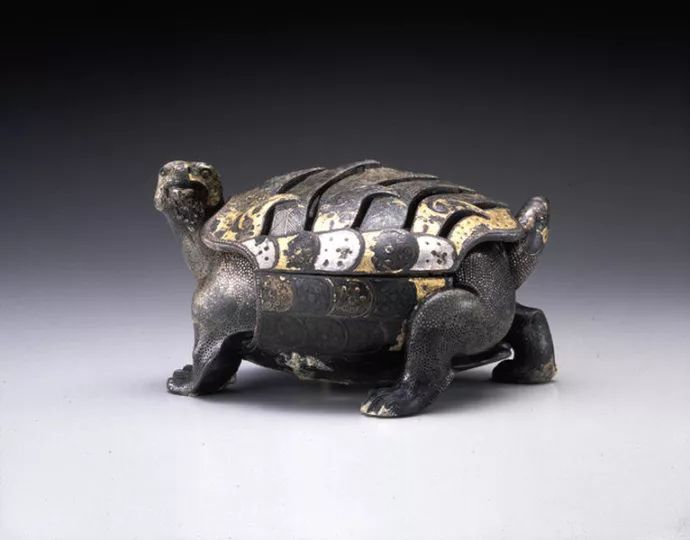这件香薰形状是一个非常饱满的龟类,开孔在底部,这有点怪。从工艺上来讲其造型之生动直超现代。而且也是镶金器,因此必是皇家之物。
