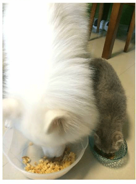 任何时候!只要我在厨房有动静!端午嗖的一下就窜过来!然后喵喵两声把狗喊到!它俩就这么眼巴巴瞅着……我从没有安安静静的吃过任何东西……从没有……