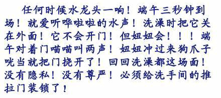 在家给端午洗澡了!!非!常!抓!狂!端午很老实!从不挣扎!妞妞在门口急傻了!一秒都不停的疯狂挠门『开门!你要干什么!放开我猫!我喊人了啊!嗷呜~~~』