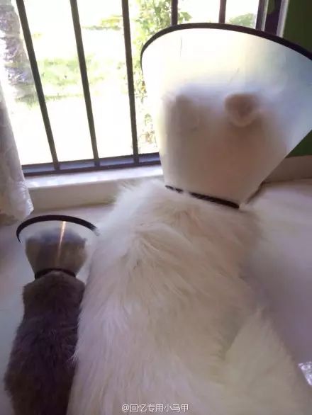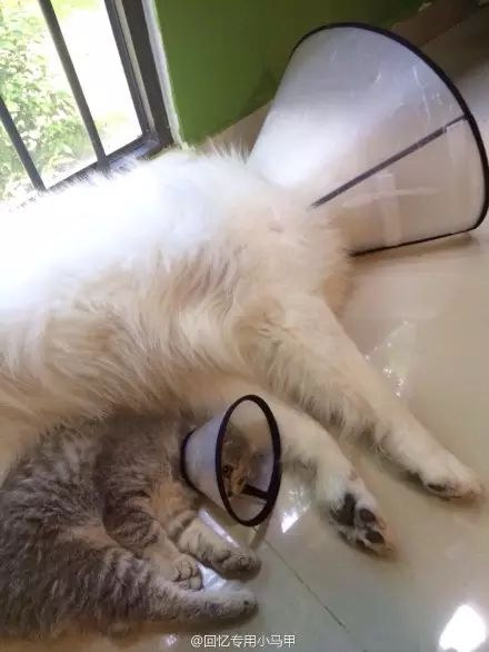 蠢狗最近总舔自己的臭脚丫,说不听,怕它感染病菌只好给它戴上了耻辱罩。罩子扣头上后妞妞着急又不会弄掉,跑去找端午。刚开始端午花几分钟才能给它挠开,后来手熟了咔咔两爪子就能帮它弄掉……没办法……只好给端午也戴上了……现在它俩老实了……朋友一生一起走……