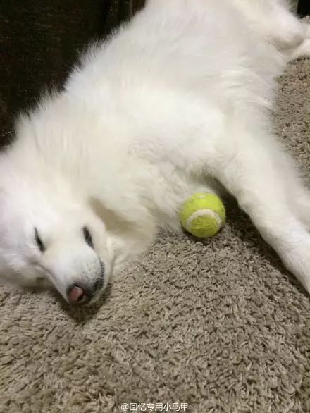 差点忘了,跟大家汇报下:蠢狗今天一出门,直奔昨天球丢失的那块草丛,钻进去把球找到了!现在根本不再让我碰,我一伸手,它衔起来球就往家跑,头也不回。现在搂着球睡着了。山无棱,天地合,再不与球绝......