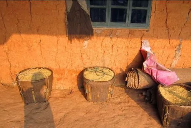 他把手插进大米里,抓了一把出来,迎着阳光细看着。