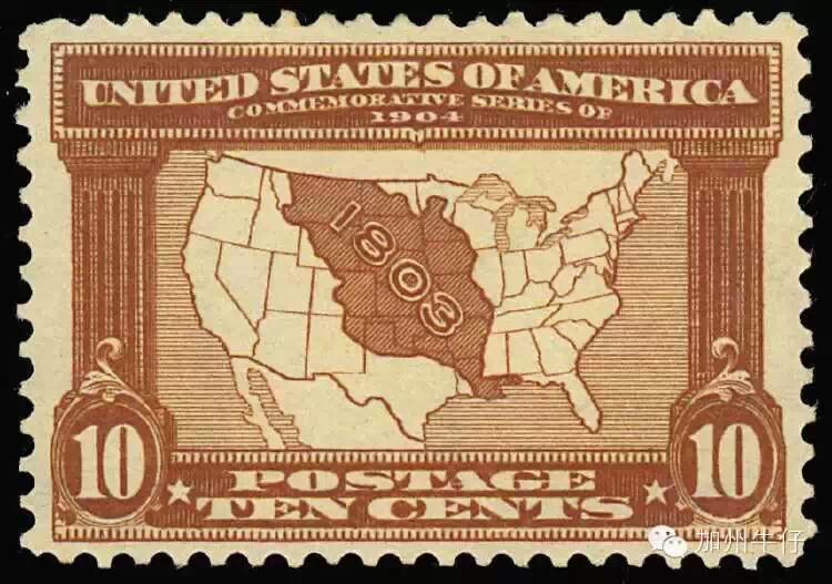 1904年路易斯安那购地100周年世博会纪念邮票(选自网络)