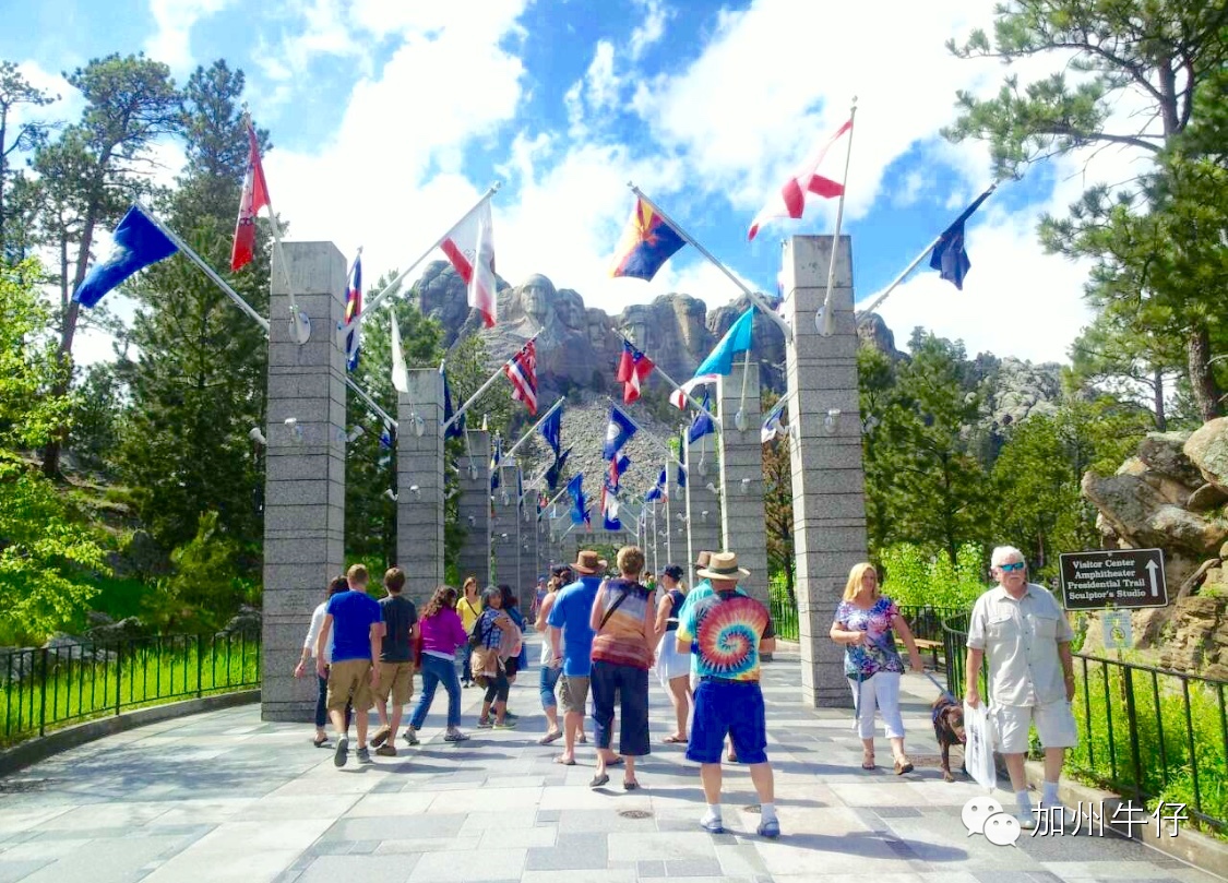 通往总统山的宽敞大道两侧挂满了美国五十个州的州旗