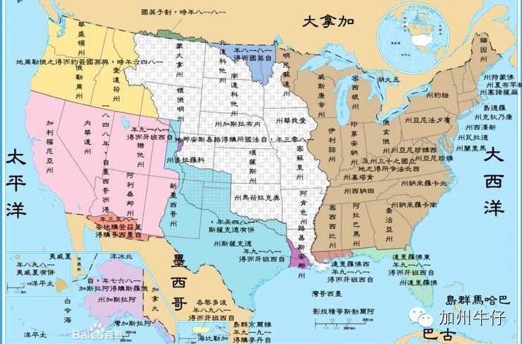 第二次美墨战争,美国从墨西哥夺取250万平方公里土地。还好,虽然打到墨西哥城,但还保留了墨西哥国,不然欧洲不干啊。