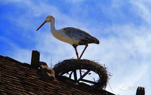 瞧,在那房顶上站立的是只什么鸟?有人说它是鹤,有人说它是鹭,其实它是“鹳鸟”。鹳鸟在丹麦文化里是个很重要的存在。在丹麦民间传说鹳鸟是具有神奇魔力的长腿候鸟。它们生活在炎热的尼罗河畔,只有夏天才去北欧避暑,在丹麦人的屋顶筑巢生育孩子,所以丹麦人认为婴孩是鹳鸟从埃及送来世界上的。安徒生从小就听到这些传说,所以他的童话《鹳鸟》写得分外美丽,鹳鸟妈妈的优雅教育真让人类汗颜啊。