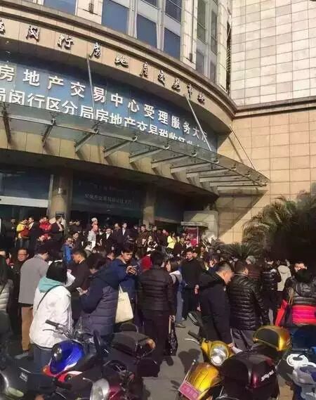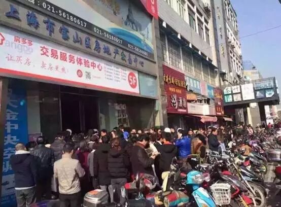 与此同时,上海各区的交易中心依旧延续着上周的火爆情形,但不同的是这次队伍已经排到了马路上……