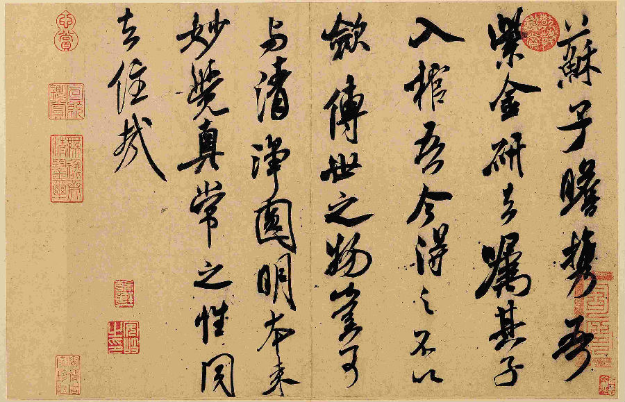 米芾书法,稳不俗、险不怪、老不枯、润不肥。他既要求在变化中达到统一,又把裹与藏、肥与瘦、疏与密、简与繁等对立因素融合起来。