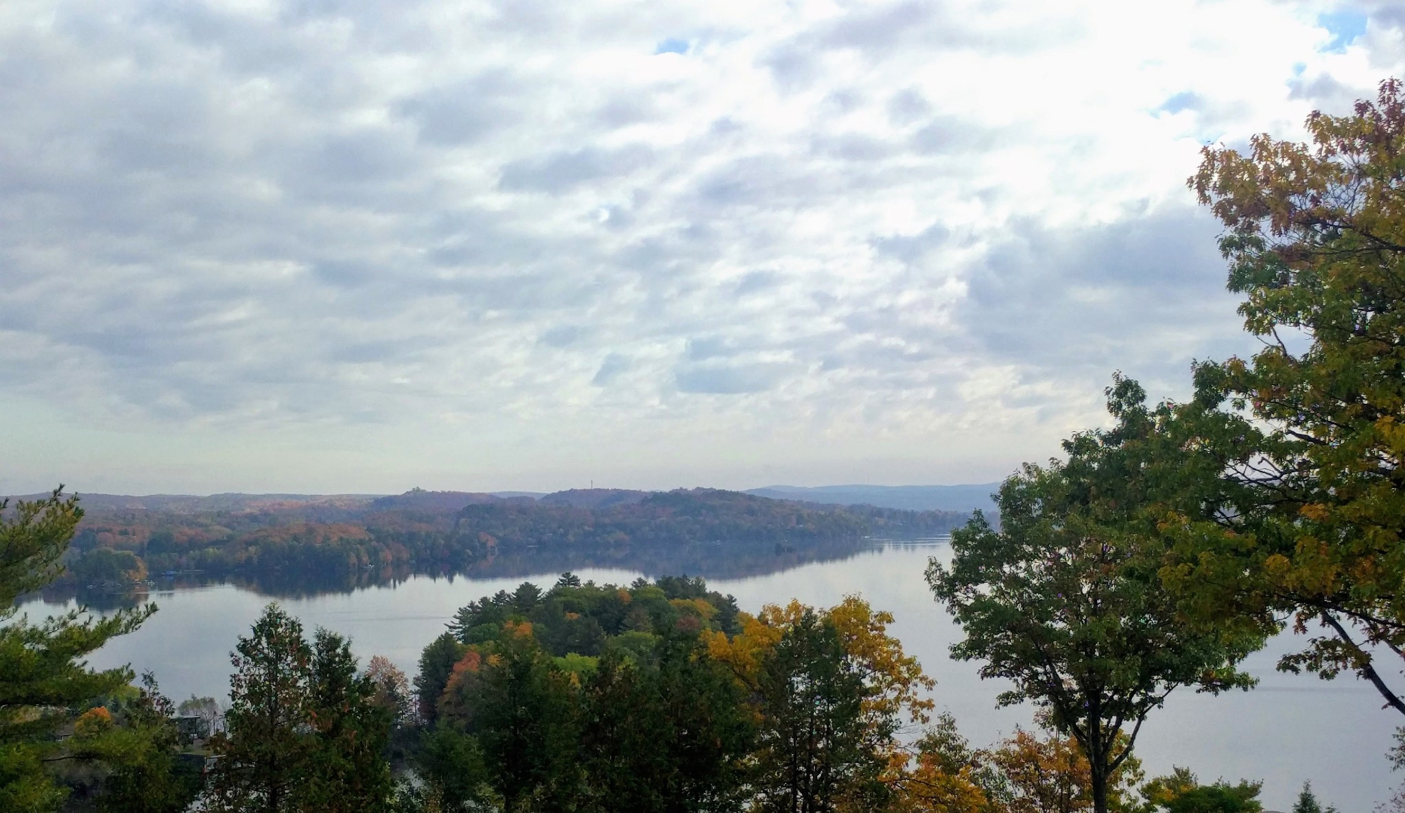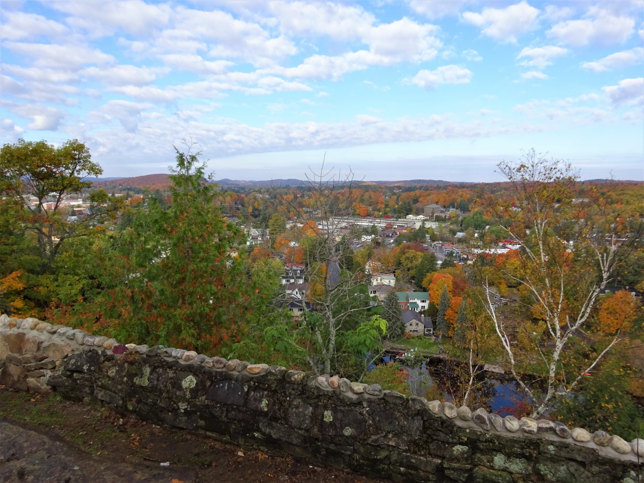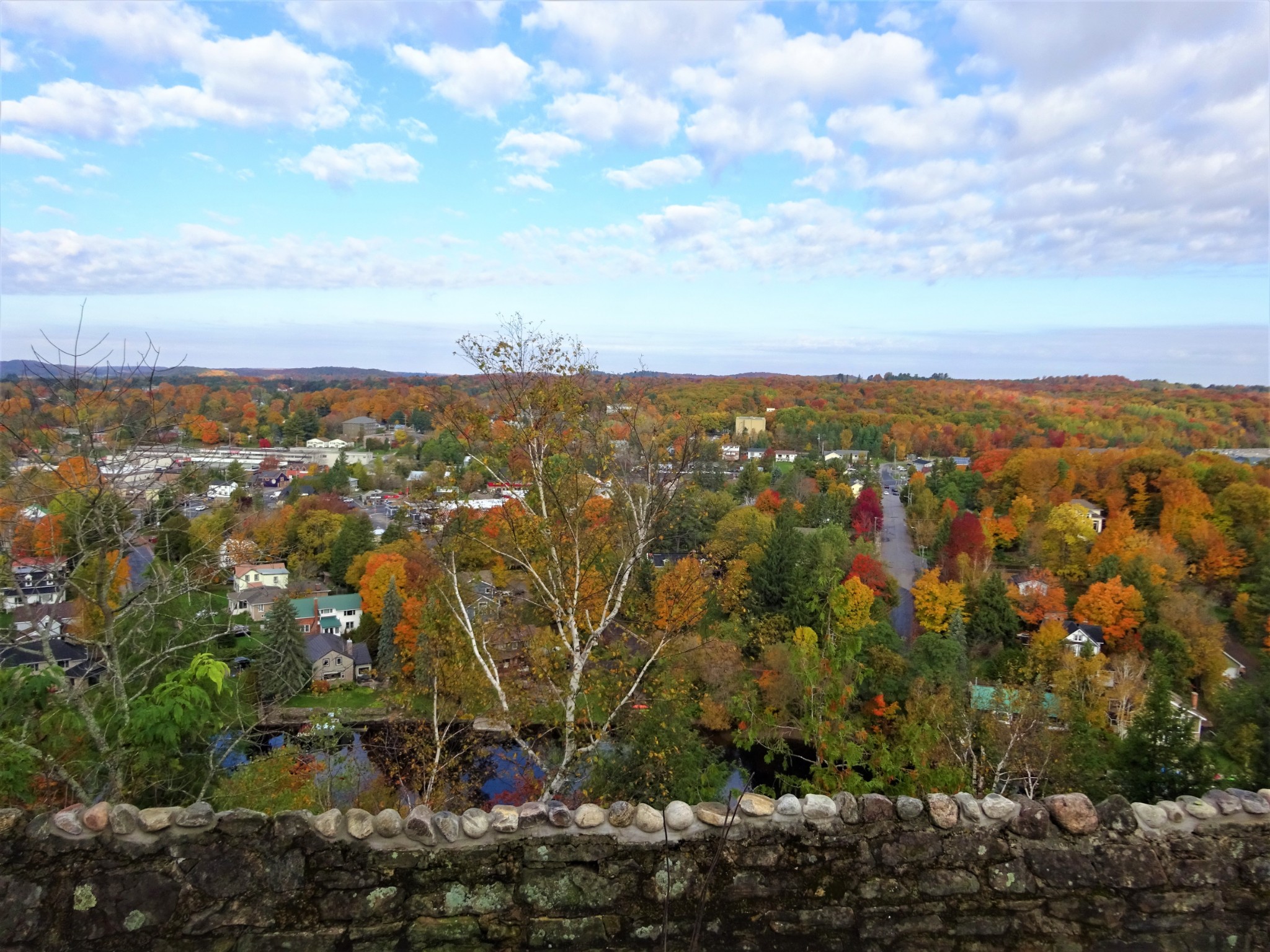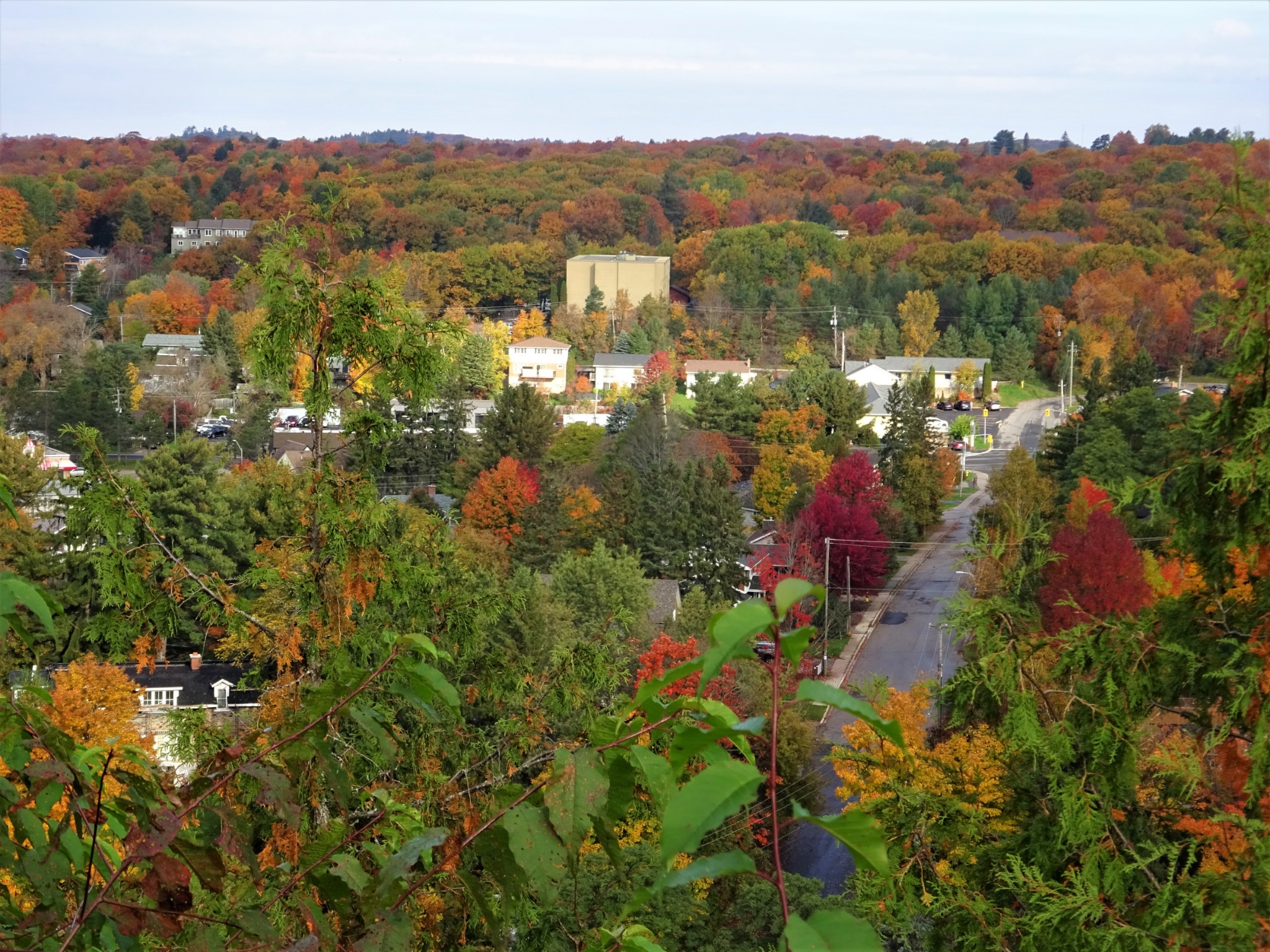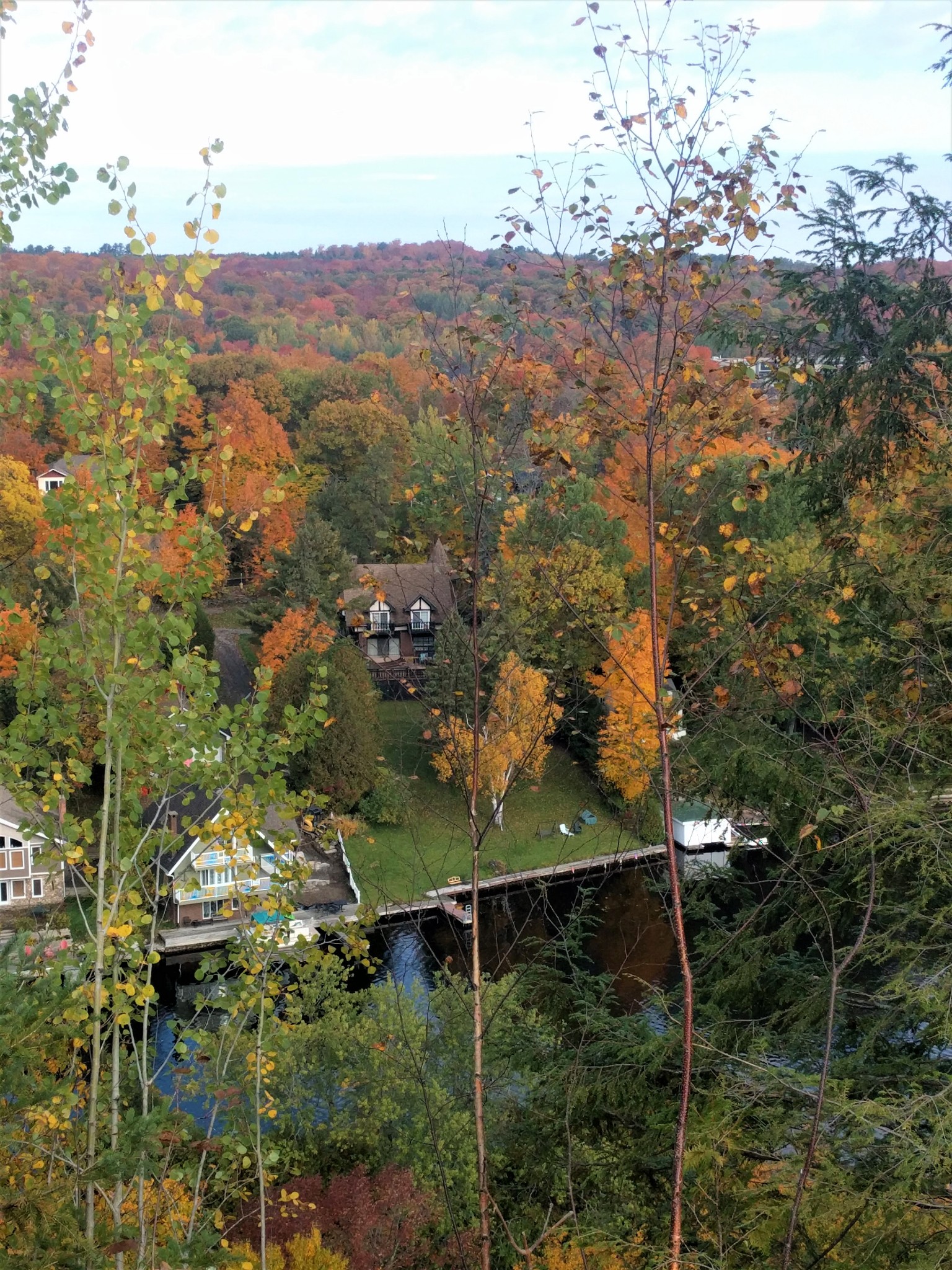 Lion's Lookout 狮子 瞭望台可以俯瞰 Huntsville城, Fairy lake (仙女湖)。 城镇, 湖泊, 红叶, 如画一般。