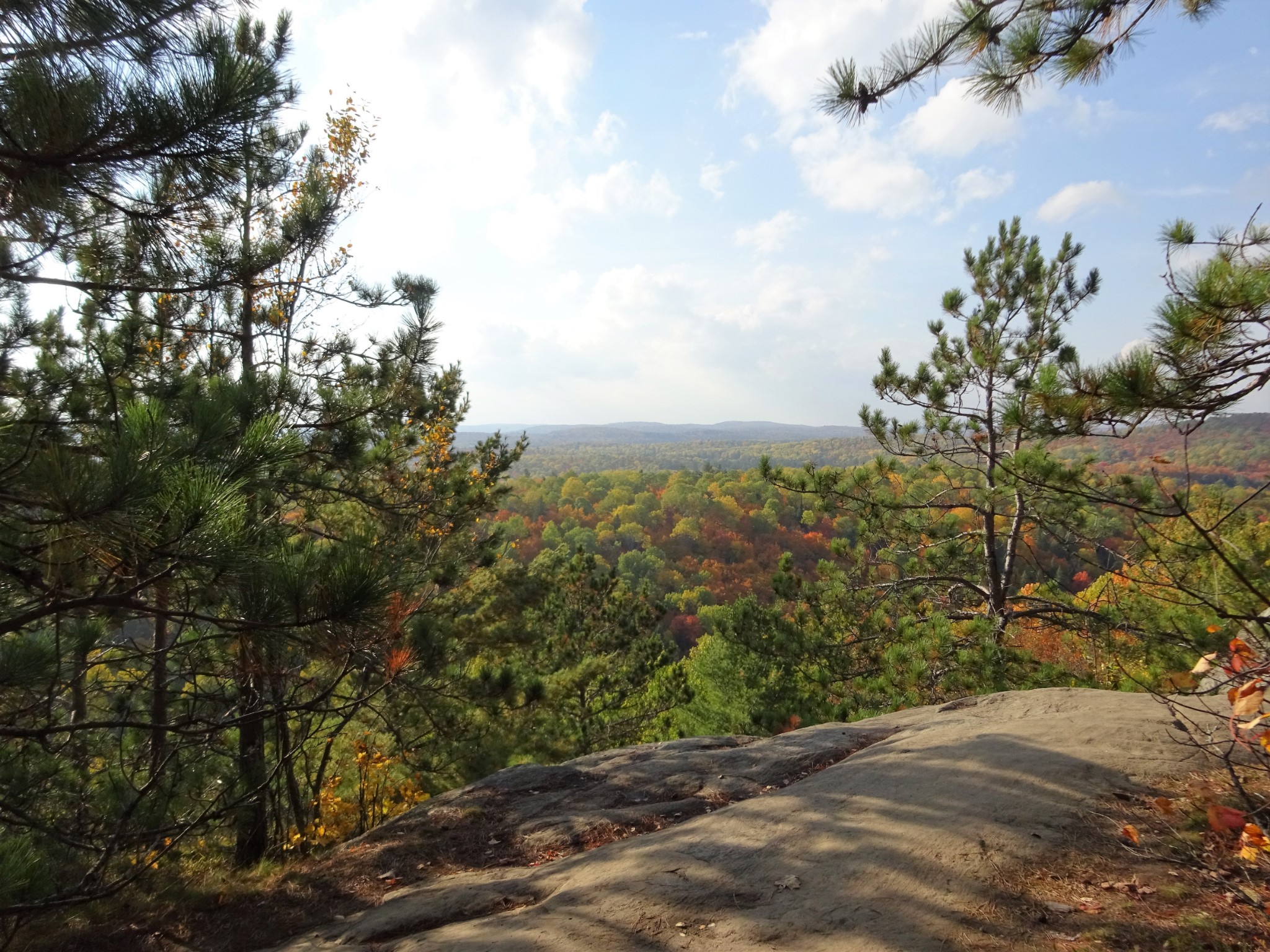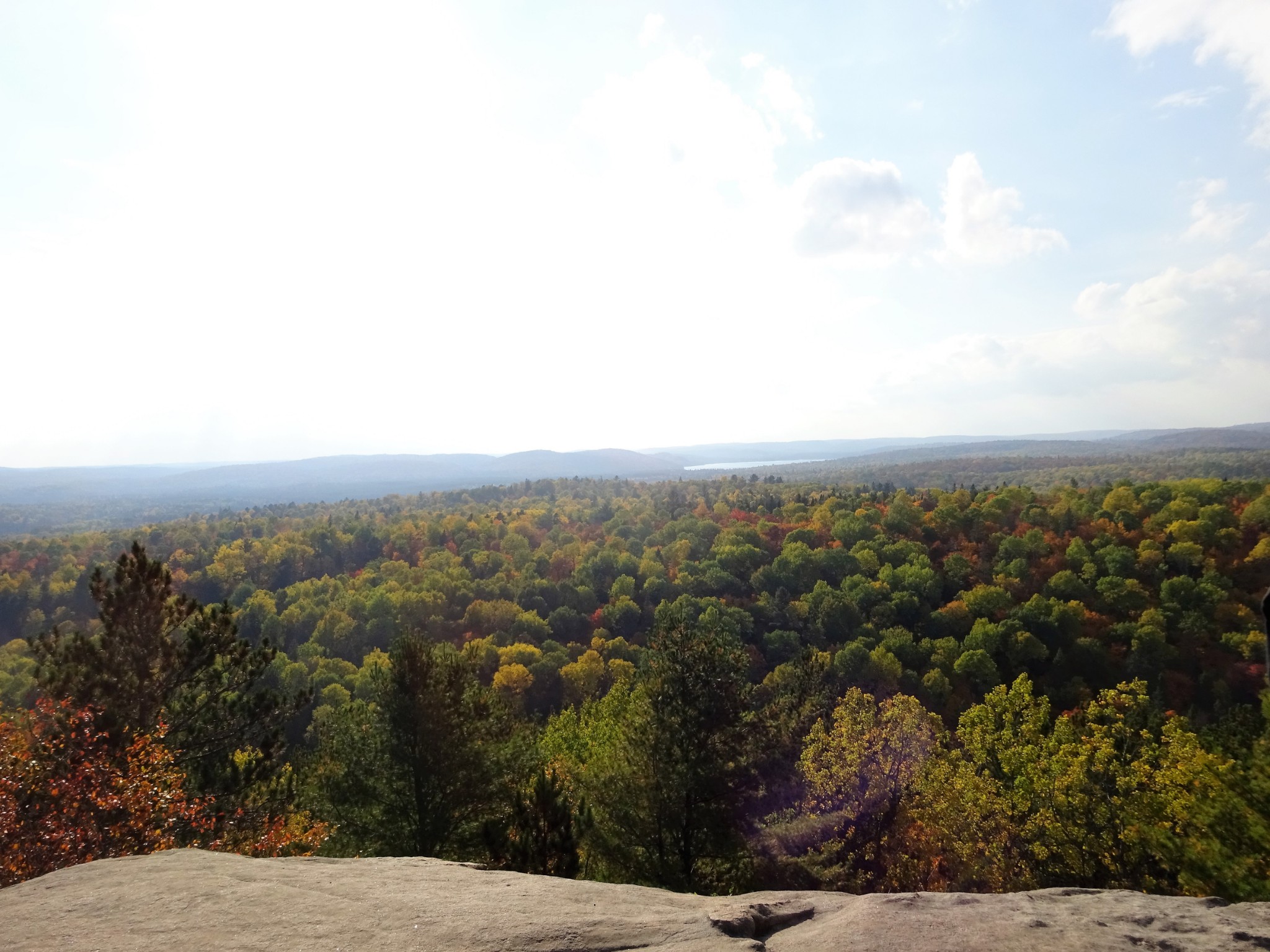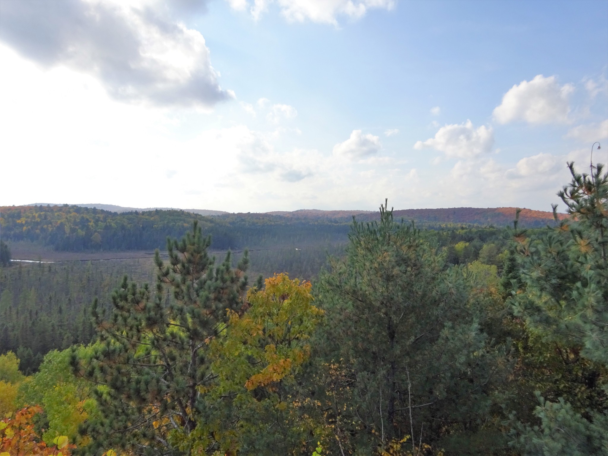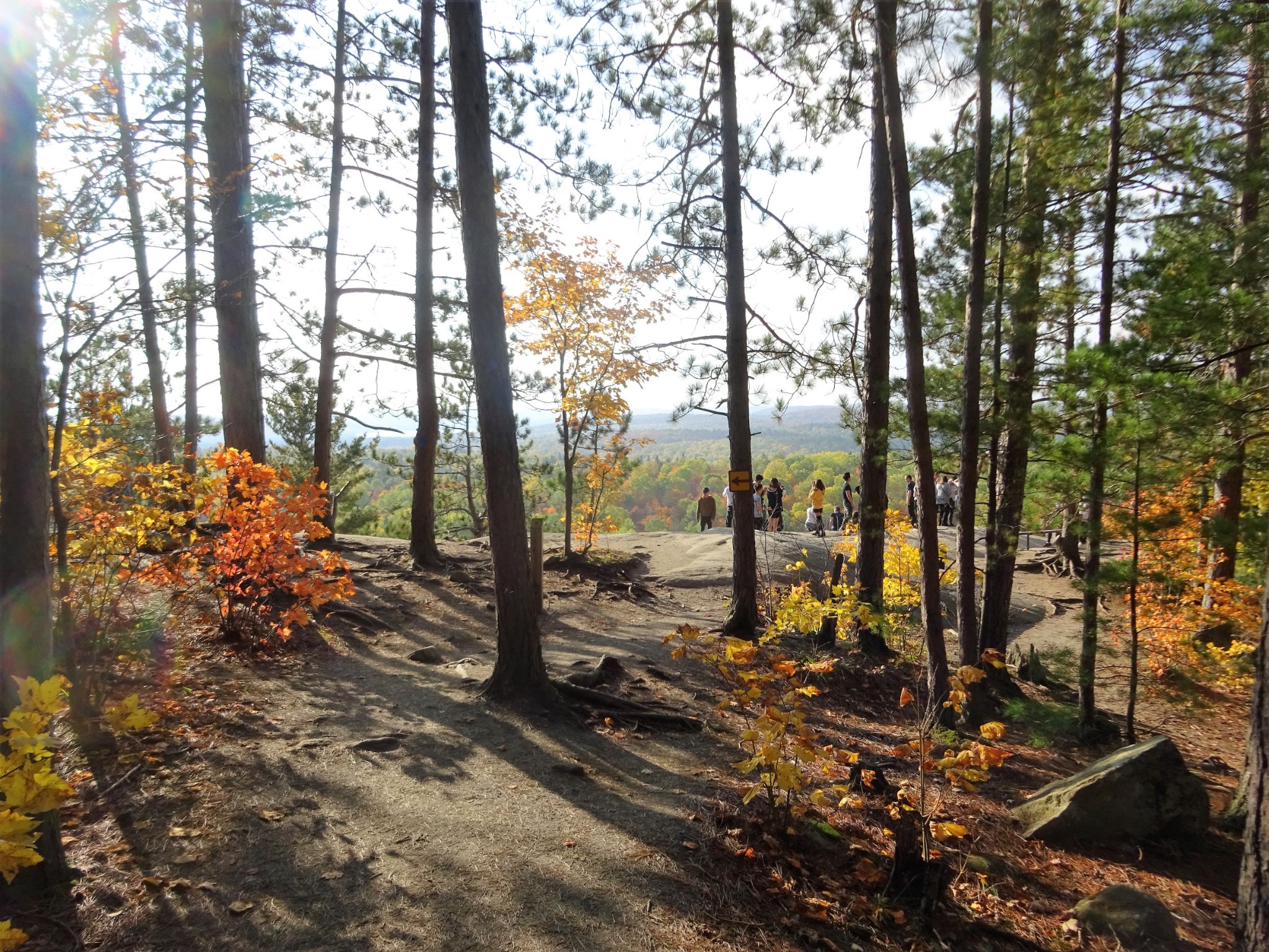阿岗昆公园里的步道很多, 最有名的要算Lookout Trail。Lookout Trail是一条2.1公里的环形路径,有的地方介绍这个步道相当陡峭,其实还好啦。步道走到最高点时,可以欣赏数百平方公里的阿冈昆的壮丽景色。走一个来回,正好欣赏秋天的红叶。